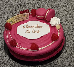 Le maca'framboisier : macaron amande, crème onctueuse à la vanille, framboises