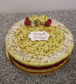 Le pistache framboise : macaron pistache, crème onctueuse à la pistache d'Iran, framboises